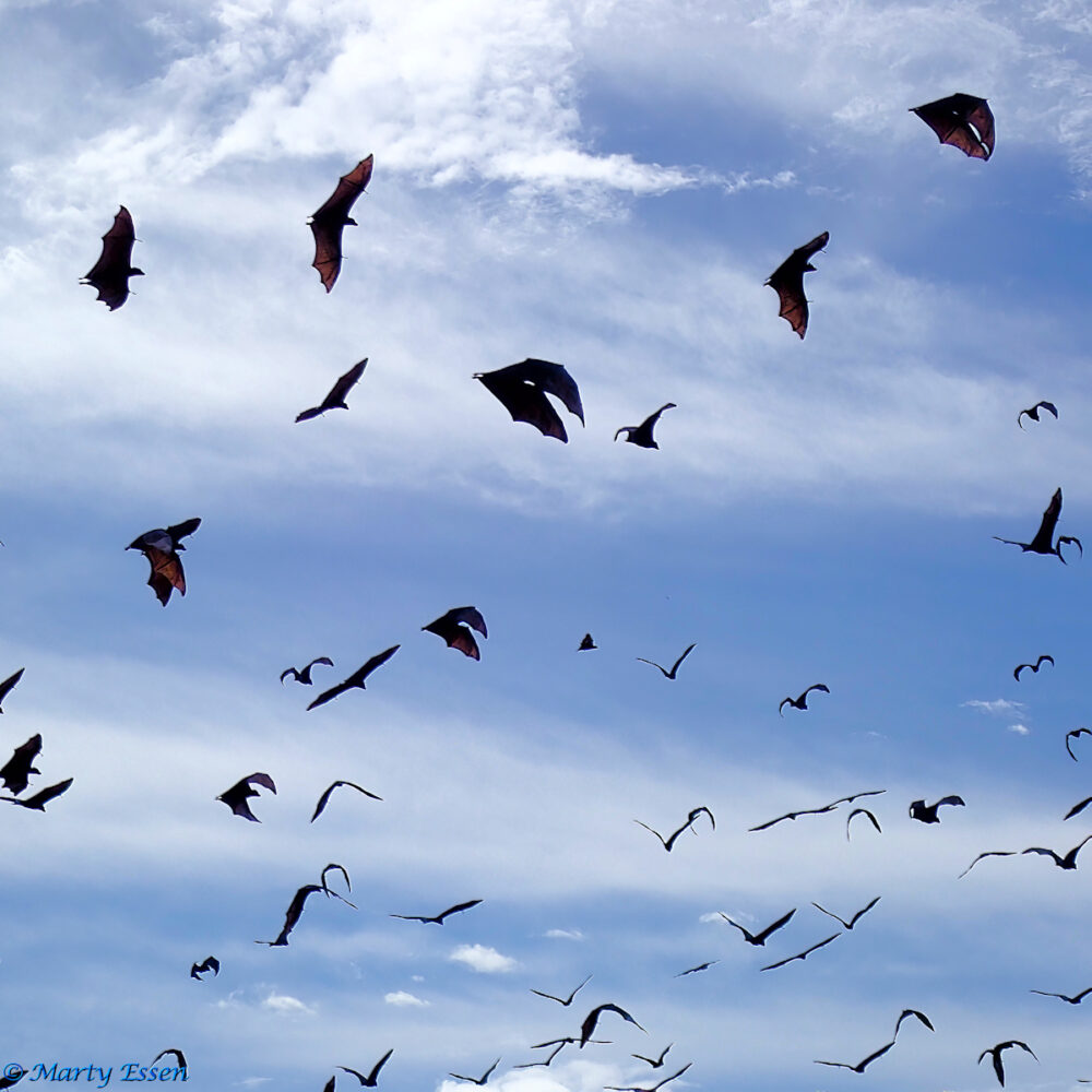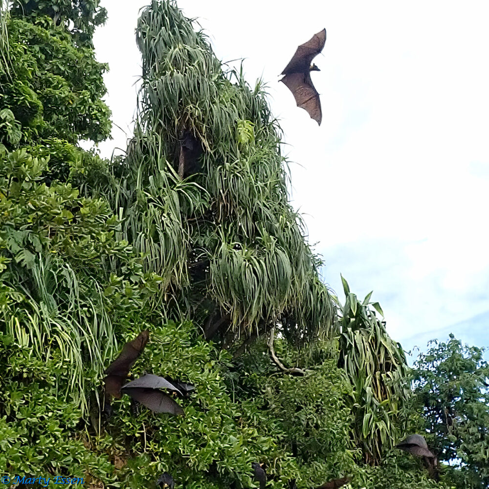 Many of the smaller islands in the Raja Ampat of Indonesian New Guinea are “bat islands.” I shot this series of photos as we approached one of those islands. It was teaming with flying foxes. Since we were returning from a stop at a waterfall, I only had my underwater camera with me. I would have loved to have gone back later with my interchangeable lens Canon.