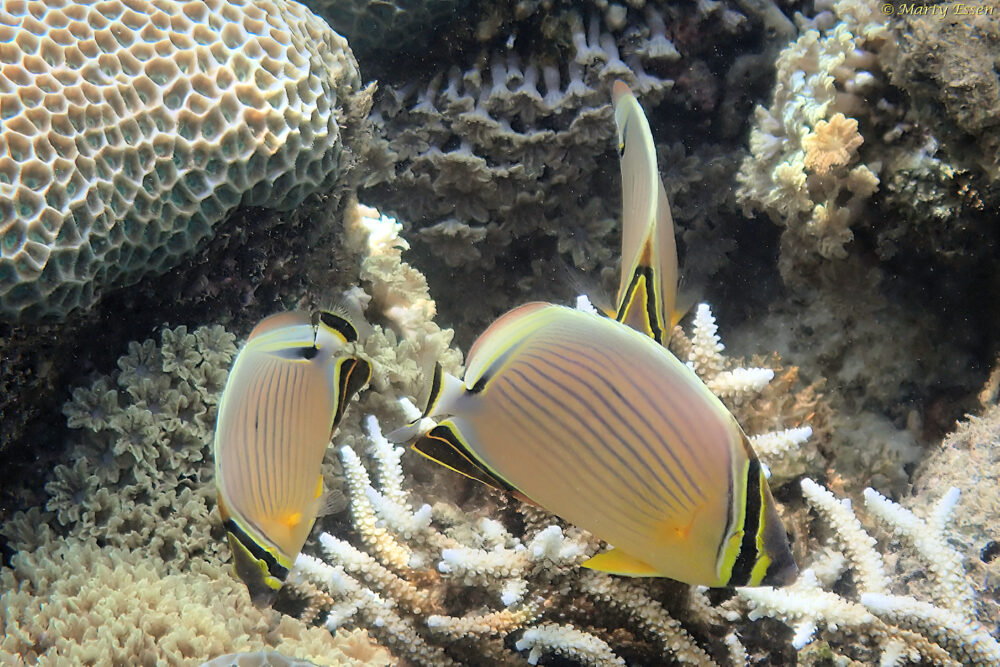 Marty’s photo of the day #4910: For yesterday’s photo of the day, I featured a bluespotted grouper that produced the illusion of bioluminescence. Today’s photo is even more extreme. These redfin butterflyfish appeared to be bioluminescent near their pectoral fins. But again, it’s an illusion. Instead, they have fluorescent pigments in their skin that absorb blue or ultraviolet light and re-emit it as longer wavelengths.